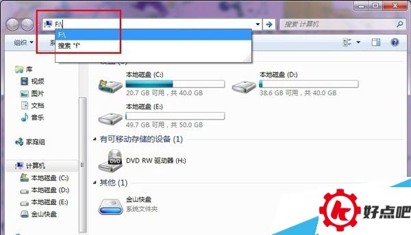 魔方电脑大师有个设置,这设置既简单又关键。要是你想访问那些被隐藏的硬盘分区,只要在“我的电脑”地址栏输入硬盘分区的盘符再加个冒号就行,这样就能访问了。比如说,像下面图里那样,直接输入“f:”,F盘就能正常打开。