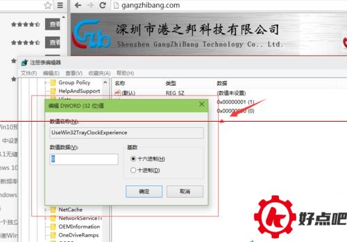 新建一个名为“UseWin32TrayClockExperience”的32位DWORD数值。
