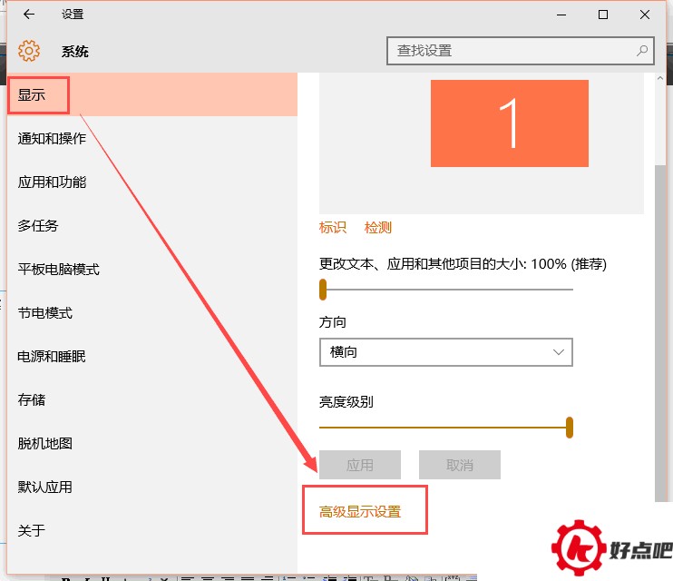 2. 在桌面空白的地方右击,接着选择“显示设置”,然后再选择下方的“高级显示设置”,就像下面这张图显示的一样。