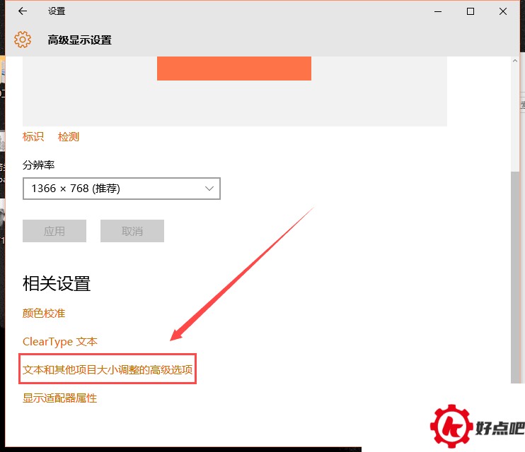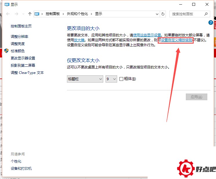 3. 选择文本以及其他项目大小调整的高级选项,就像下面图中所展示的那样。