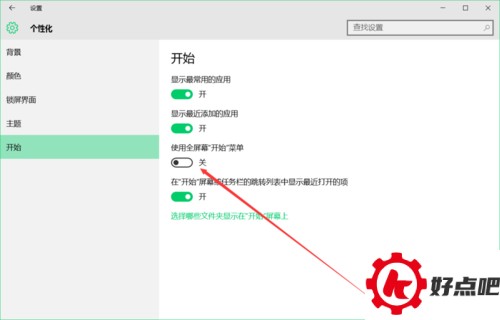 你还可以选择把全屏的“开始”菜单关掉,这样就会是Win7的操作习惯了。