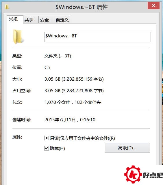 之前我们给大伙详细说过,Windows 10的升级准备文件会放在系统分区(通常是C盘)的$Windows.~BT这个隐藏文件夹里。可是呢,好多人会察觉到,这个文件夹老是显示为140M,总共194个文件,而且一直就没什么变动。这是不是就卡在这儿不动了呢?