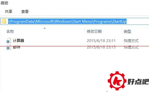 它会直接弹出启动项所对应的目录,接着就和之前的方法一样,把应用程序的快捷方式复制到启动目录当中。