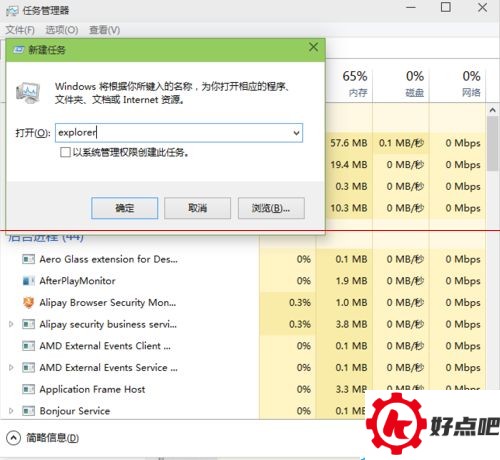 办法是:按下“Ctrl+Shift+Esc”这一组合键,就能把任务管理器打开。接着,在任务管理器里选中“文件”,再选择“新建任务”。之后呢,输入“explorer”,最后确定就好了。