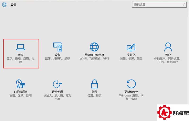 首先,我们把电脑的设置面板打开。打开之后呢,就会进入一个面板,就像下图显示的那样。这个时候,在面板上我们能看到有个“系统”按钮,然后我们点击这个按钮就行。