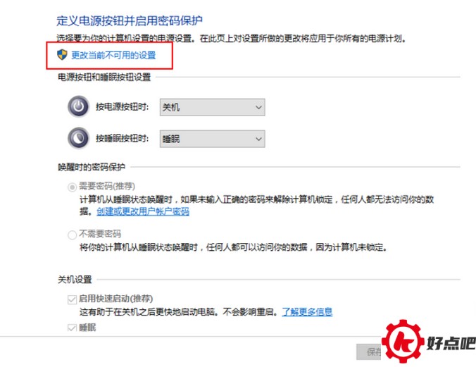 接着,我们在面板上点击“更改当前不可用的设置”这个按钮。