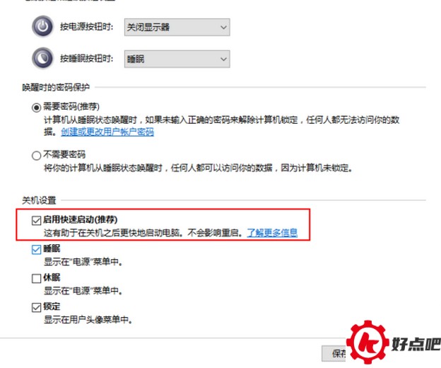 随后就能看到一个名为“启用快速启动(推荐)”的选项卡,把这个选项选中,然后单击“保存修改”按钮就可以了。