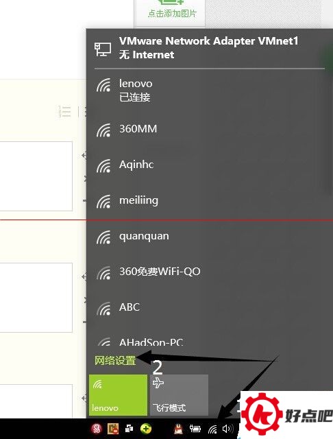 1、左键点击无线--->选择网络设置。