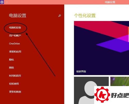 在“电脑设置”这个选项里,去点击“电脑和设备”,就像下面这张图显示的那样。