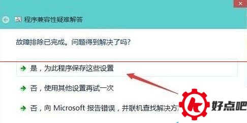 先点击“是,为此程序保存这些设置”。设置好之后,当我们再次打开程序时,程序就会在Windows 7兼容模式下运行。