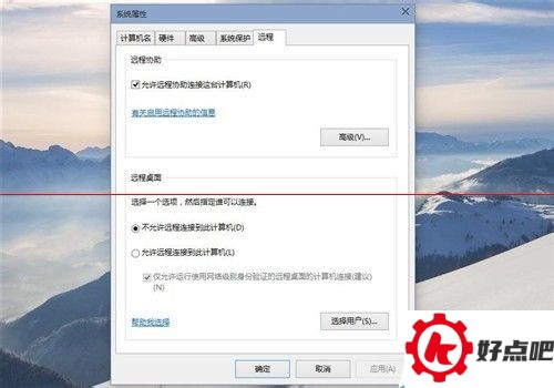 6. 把远程协助里“允许远程协助连接这台计算机”的勾选取消掉,就像下面图里展示的那样。