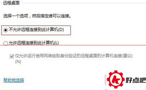 7. 按照下面图里的指示,在远程桌面里勾选“不允许远程连接到此计算机”这一选项。