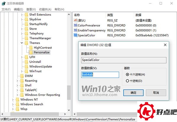 在右侧,有一个名为SpecialColor的32位DWORD值。这个值就是自定义的颜色值哦,要是你想更改它的值,双击就行啦。