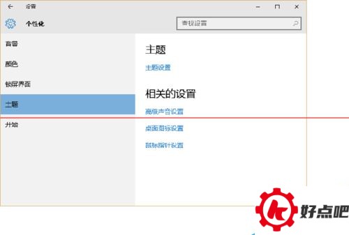 3. 接下来,会弹出“个性化”设置窗口。在这个窗口里,我们先在左侧点一下“主题”,接着在右侧点击“主题设置”。