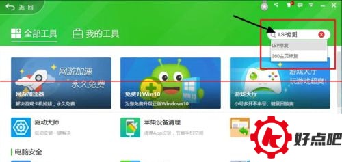 打开功能大全的窗口后,在其右上角搜索“LSP修复”。