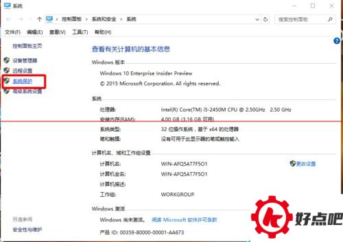 2、点击“系统保护”。