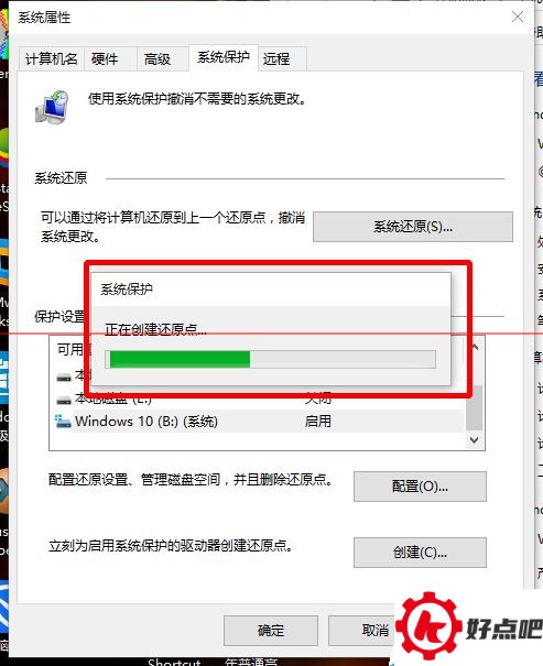 我们能看到,驱动器保护已经开启了。这时候呢,去点击“创建”这个按钮,就能创建还原点啦。