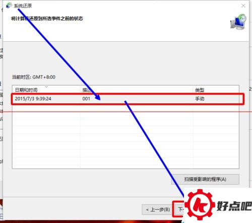 从已配置的还原点里挑一个,然后点击“下一步”。