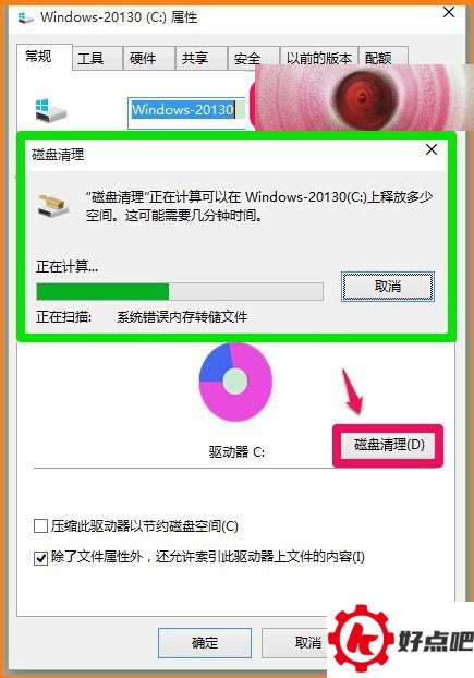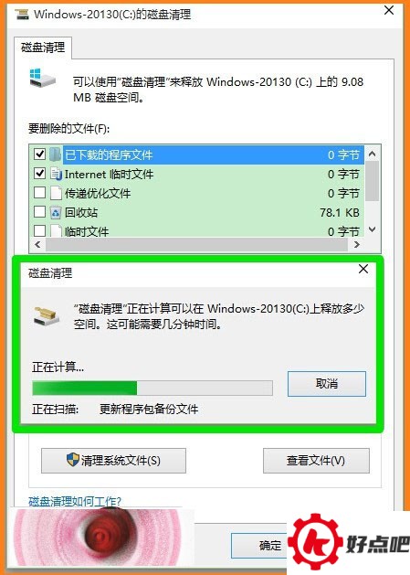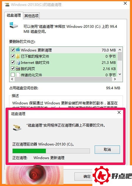 “磁盘清理”这个实用程序呀,正在对机器上那些没用的文件进行清理呢,稍微等一下就好。