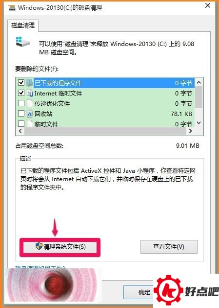 4. 把Windows10 - 10130(C:)磁盘清理窗口打开,然后用左键点击“清理系统文件(S)”。