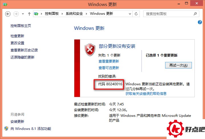 要是在试着安装更新的时候,收到了Windows更新错误80240016,这就意味着系统正在进行别的安装工作呢。那就得等着这个安装结束,之后再去尝试安装更新。要是您不晓得是哪个程序或者设备正在搞安装或者更新的事儿,可以查看计算机的通知区域,从中获取进度方面的信息,或者查看桌面、任务栏,瞧瞧是不是有安装向导正在运行。要是这个问题还是没解决,那就试一下Windows更新疑难解答吧。