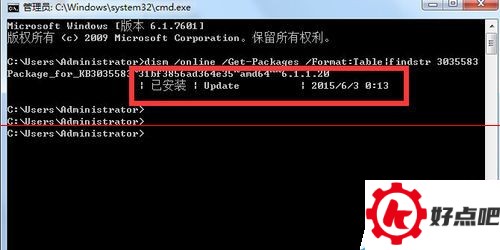命令提示符能显示你有没有安装KB3035583补丁呢,就像图里红色部分标记的那样。要是还没安装的话,那就去控制面板里的Windows更新那儿检查一下更新吧。