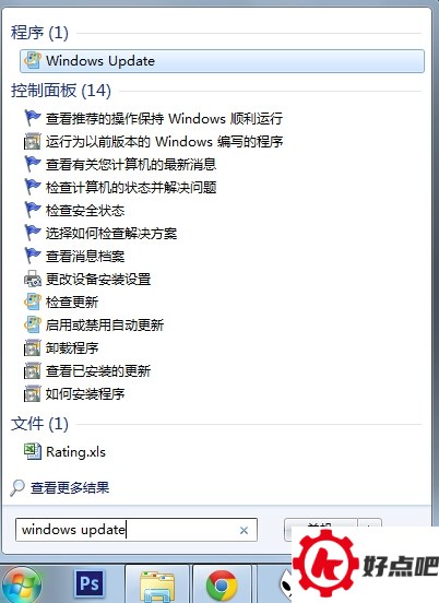 接着,按下键盘的Window键,随后在搜索框里输入“Windows Update”,再点击出现的更新程序。