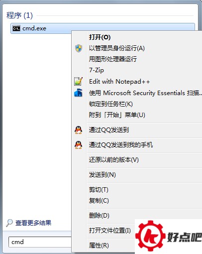 先按下Windows键,接着输入“cmd”,不过这时候别去点击它。要在它上面点击右键,然后选取“以管理员身份运行”这个选项。