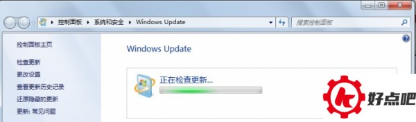 先回到之前已经打开的Windows更新窗口,接着点击左边的“检查更新”选项,随后就能看到“检查更新中”这几个字了。