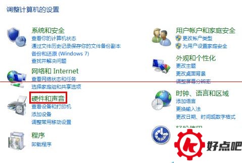 首先,在屏幕的左下角找到Win徽标,然后用鼠标右键点击这个徽标。接着,在弹出的菜单里找到并点击“控制面板”。之后,进入到控制面板的界面当中,再去点击“硬件和声音”这一选项。