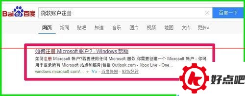 在百度搜索里输入“Micrososft帐户注册”,找到“如何注册Micrososft帐户?-Windows帮助”这个条目后点击进入。