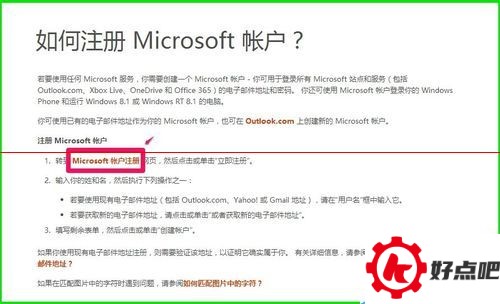 2. 点进去之后,就能看到怎样注册Micrososft账户啦。然后,点击“Micrososft账户注册”就行。