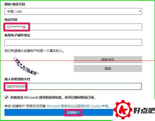 电话号码对保护帐户安全是有帮助的。Microsoft要是得验证你的身份,就会通过短信或者自动呼叫的方式发送一个验证代码。Microsoft想确定创建帐户的是个实实在在的人。所以得输入真实的手机号码才行,不然在安装系统的时候就接收不了验证码。比如说157******98这种号码。