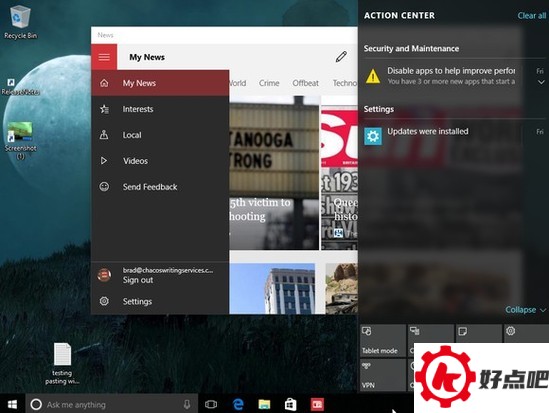 Windows 10弄出了个新的Action Center(操作中心),靠这个来解决问题。这个操作中心就在任务栏的右侧。那些没看到的通知会一直待在那儿,一直到用户把它们清除掉为止。在操作中心里,用户还能找到些快捷键,用这些快捷键就能很快地管理WiFi、蓝牙,还能快速进入平板电脑模式呢。比如说,要是你着急连接WiFi,直接在操作中心点一下对应的快捷键就行,特别方便。